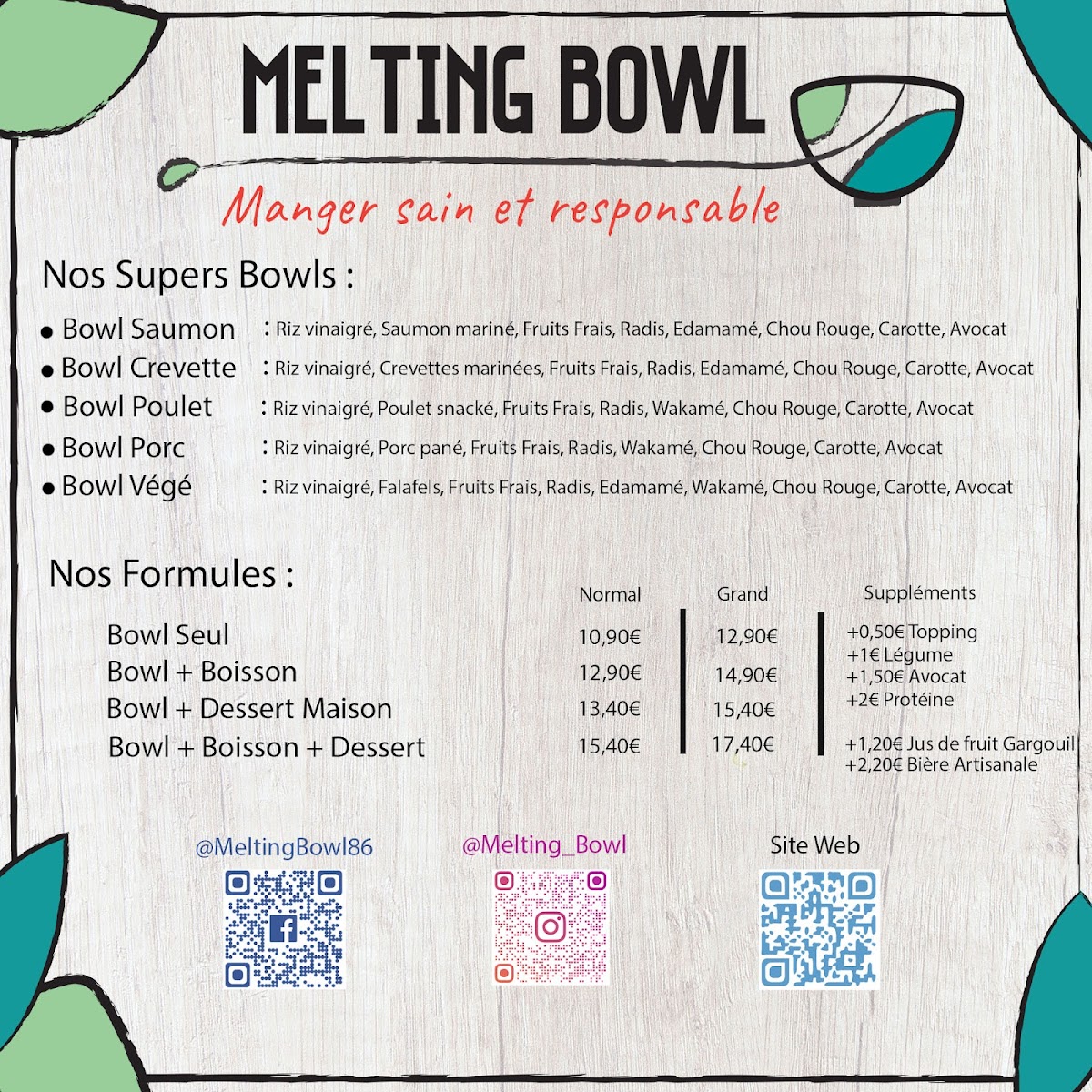 Melting Bowl is a delightful Hawaiian eatery nestled in Chasseneuil-du-Poitou, France, specializing in fresh, vibrant poke bowls that truly capture the essence of island flavors. The menu highlights a balanced selection of proteins—from succulent falafels perfect for vegetarians to expertly crafted seafood options—paired with quality, fresh ingredients. While the base of rice, vegetables, and fruits remains consistent, the variety in sauces and proteins provides enough room for personalization. Notably, the ginger-garlic sauce is a standout, enhancing every bite with its bold taste.
